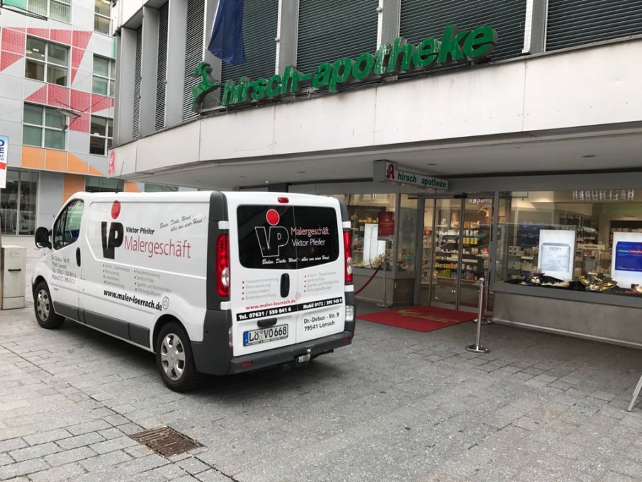 Eines unserer größeren Projekten war der Umbau der gesamten Hirsch-Apotheke in der Innenstadt in Lörrach.